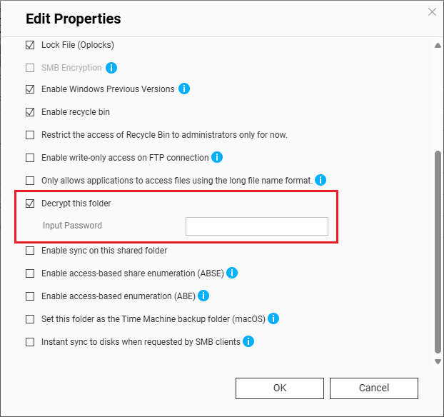 - Pokud je šifrovaná složka zamčená, odemkněte ji.PoznámkaPokud je složka zamčená, nemůžete upravovat vlastnosti složky, abyste deaktivovali šifrování.