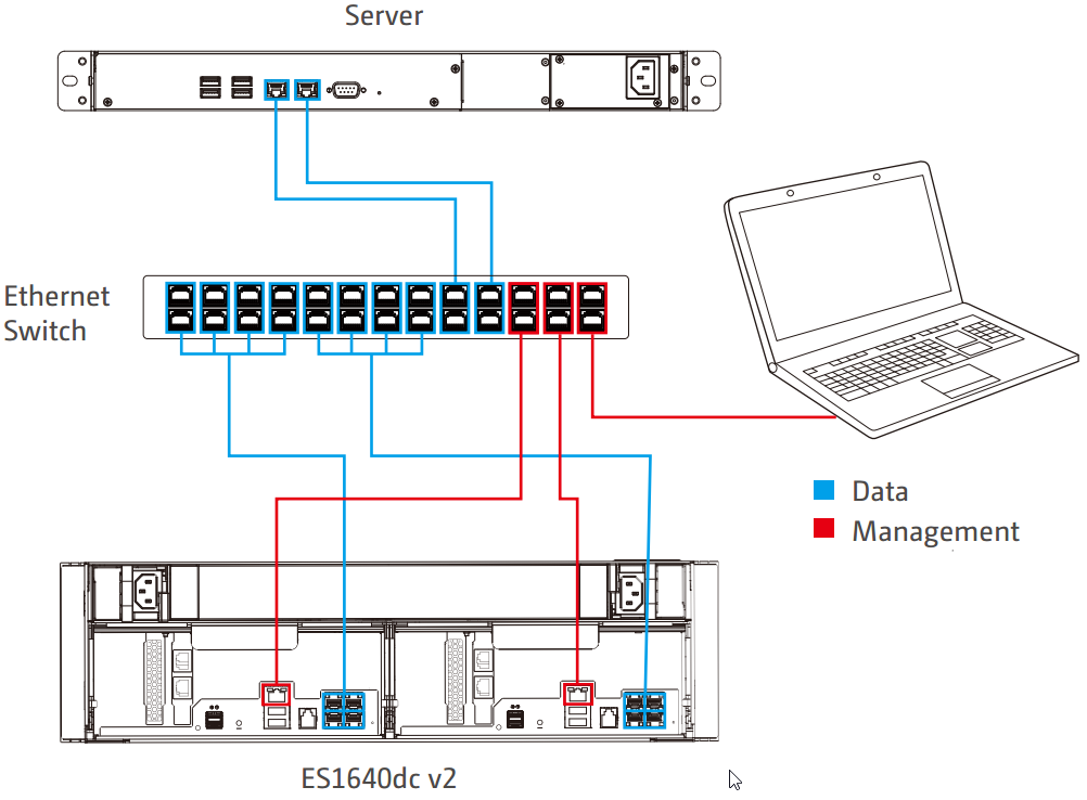 • Management ports (shown as red in the diagram below) are for managing the NAS via QES desktop.