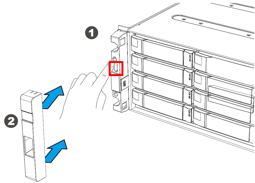 Power on the ES NAS by pressing the power-on button on the left front panel.