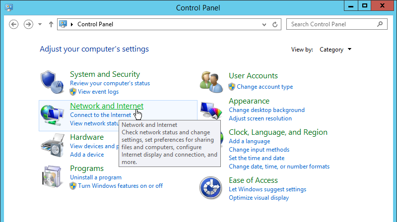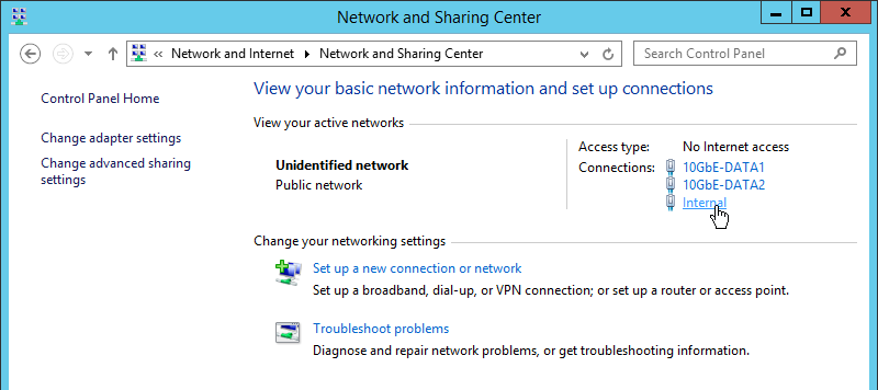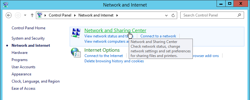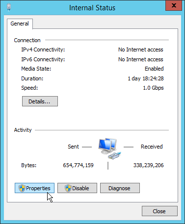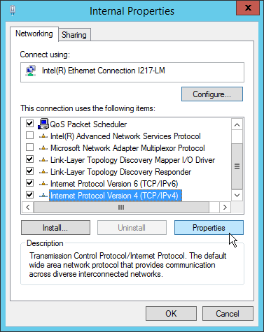 3. Configure the PC network settings to be in the same range as the ES NAS. Using a PC with Windows Server 2012 R2 as an example: