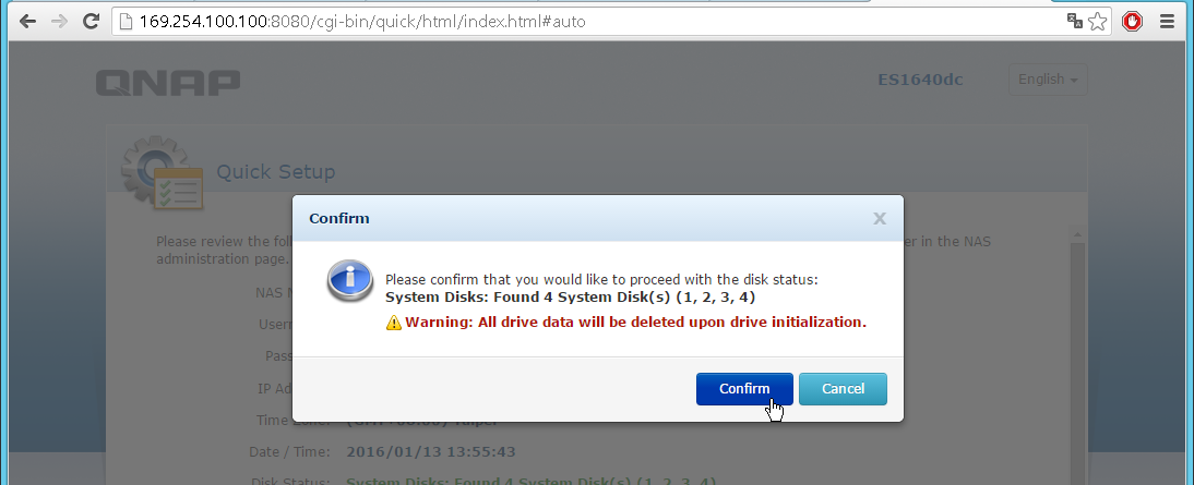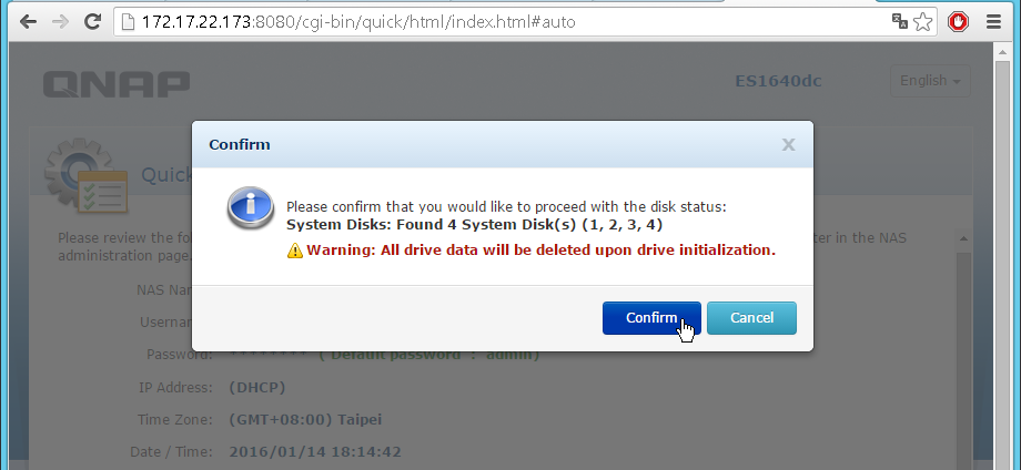 13. The system prompts you for confirmation of disk initialization, if any raw unused disks are found. Click “Yes” to begin disk initialization or “No” cancel.