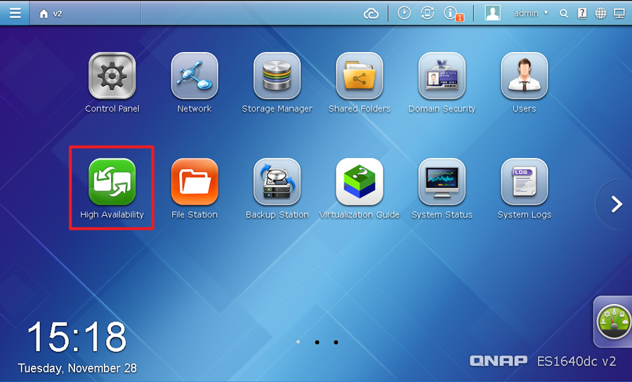 1. After logging in to QES, it is recommended to check the status of system and hardware components. Click “High Availability” on the QES desktop.