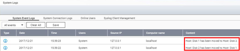 Yes, you may change the order of your drives by simply hot swapping them. Once this is done, you may open the System Log to make sure the procedure has been successful. Here’s how: