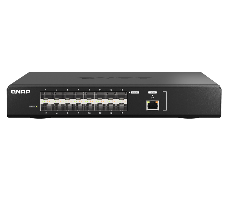 QNAP tilbyder omfattende administrerede og ikke-administrerede virksomhedsswitche med hastigheder fra 2,5 GbE og 10 GbE til 25 GbE og omfatter PoE-modeller, rackmonterede modeller i industrikvalitet samt desktopmodeller. QNAP's all-inclusive højhastigheds-switche hjælper virksomheder med hurtigt at implementere netværksinfrastruktur med høj hastighed, hvilket sætter mere fart på applikationer til virksomheders backbone, smarte hoteller, detailhandel og Industri 5.0.