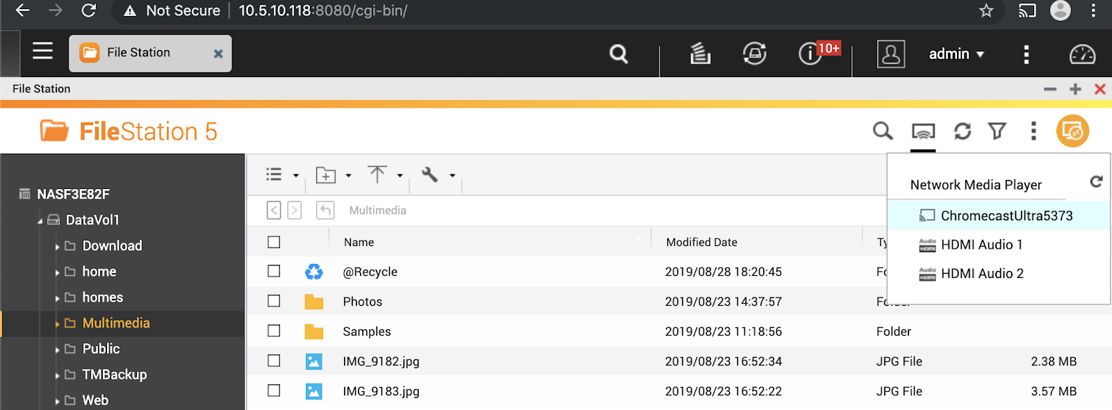3. Simply open File, Photo, Music or the Video Station apps, select the file(s) you would like to stream and hit the cast button in the top right corner of the window as shown in the picture below.