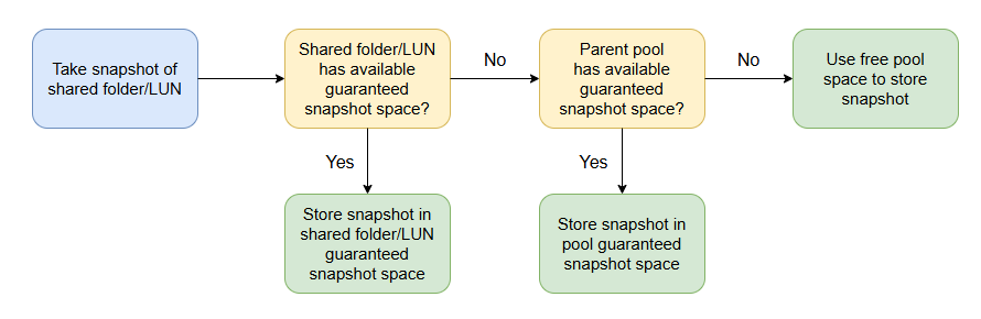 Garantierter Snapshot-Speicherplatz für Freigabeordner/LUNs ist Speicherplatz, der in einem Speicherpool für die Speicherung von Snapshots eines bestimmten Freigabeordners oder einer LUN reserviert ist.