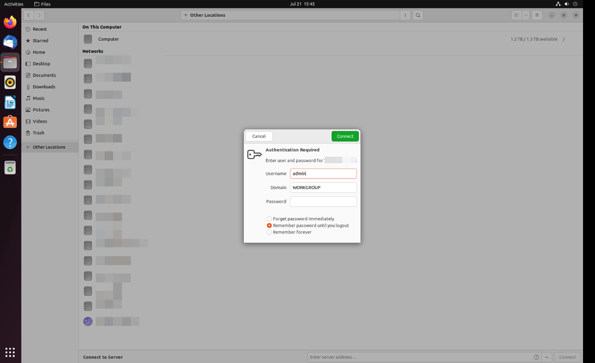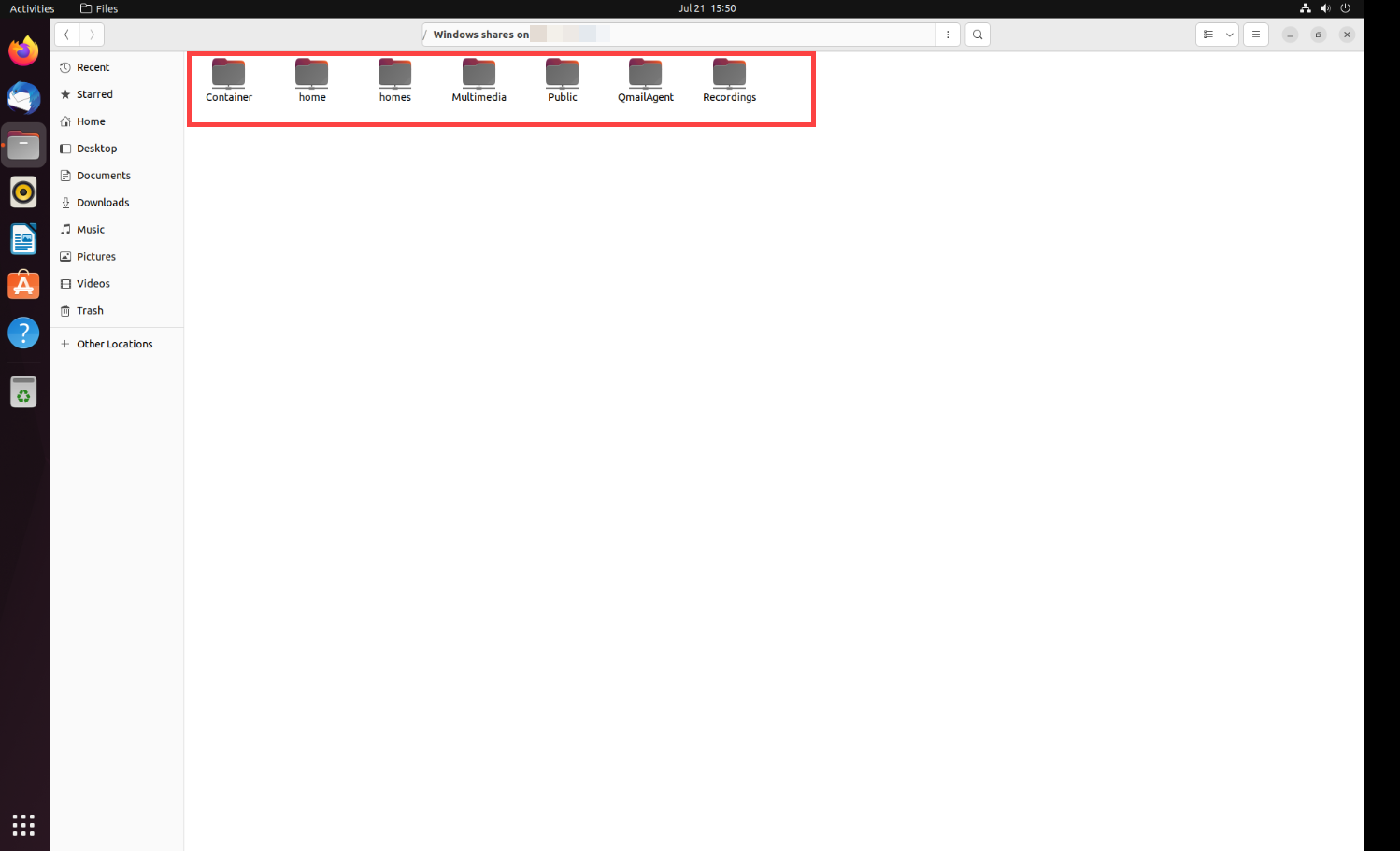 Zugriff auf Freigabeordner auf einem lokalen QNAP Gerät von Ubuntu Remote Desktop aus