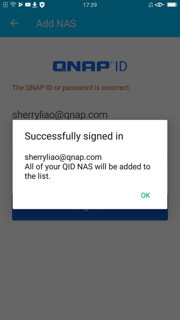 Sie können auch auf "QID anmelden" antippen, um Ihr NAS zur Liste hinzuzufügen.