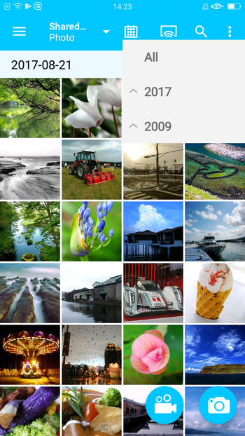Mit Qphoto können Sie unterwegs jeden wertvollen Moment festhalten, erleben und mit anderen teilen. In Qphoto werden Ihre Fotos auf einer Zeitleiste angezeigt und angeordnet, so dass Sie schnell navigieren und schnell darauf zugreifen können. Sie können wählen, ob Sie Fotos auf Ihrem mobilen Gerät speichern oder auf einen QNAP NAS hochladen möchten. Sie können Fotos auch über E-Mails oder soziale Netzwerke mit anderen Benutzern teilen.