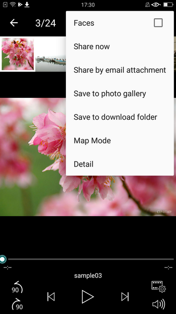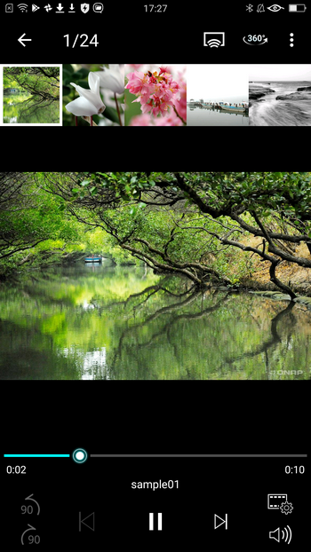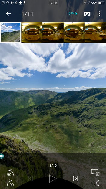 Qphoto zeigt automatisch 360° Fotos an oder spielt 360° Videos im Panorama-Modus ab, wenn deren Metadaten das 360° Tag enthalten.