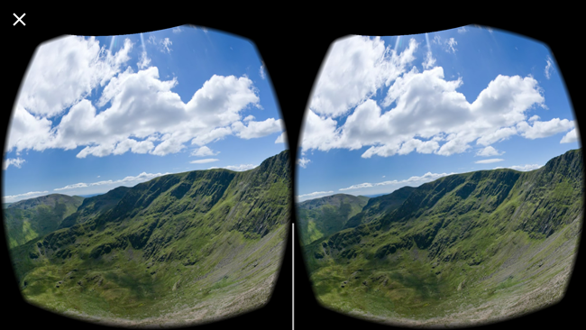 Wenn der Panoramamodus aktiviert ist, können Sie auf tippen, um das Foto oder Video im VR-Modus anzuzeigen. Sie können Ihr Telefon dann in einen Google Cardboard Viewer einlegen.