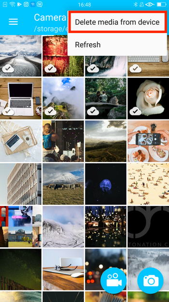 und wählen Sie "Medien vom Gerät löschen". Qphoto wird alle hochgeladenen Elemente von Ihrem Gerät löschen.