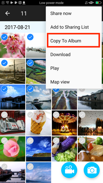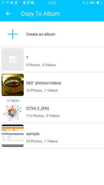 - In Album kopieren: Laden Sie die ausgewählten Elemente auf das NAS hoch und kopieren Sie sie in ein Album.