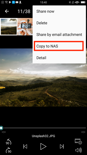 Sie können auch den Multimedia Viewer öffnen, auf tippen und "Auf NAS kopieren" auswählen, um Dateien hochzuladen.