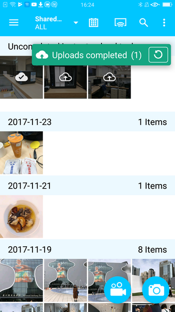 Mit Qphoto können Sie sofort Dateien auf das NAS hochladen, wenn Sie Fotos oder Videos aufnehmen. Ihre Medieninhalte werden sicher auf dem NAS gespeichert. Diese Funktion hilft Ihnen, Speicherplatz auf Ihren Mobilgeräten zu sparen.