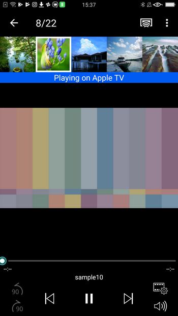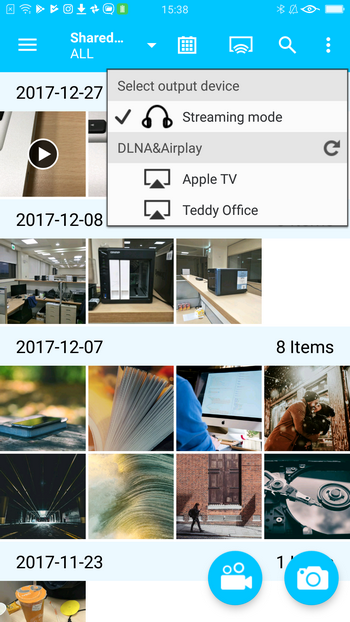 Mit Qphoto können Sie Ihre Fotos und Videos auf mehrere Geräte streamen. Tippen Sie auf , um alle Geräte in Ihrem Netzwerk anzuzeigen und ein Mediengerät auszuwählen.