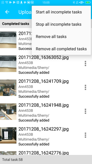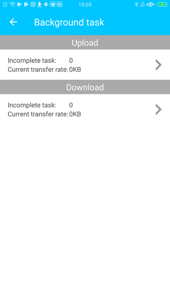 Um Hintergrundaufgaben anzuzeigen, tippen Sie auf und wählen Sie "Hintergrundaufgabe". Sie können den Status der Upload- und Download-Aufgaben überprüfen. Sie können sich auch die unvollständigen Aufgaben ansehen und den aktuellen Fortschritt überprüfen.