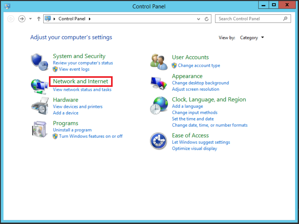 Please note: in some cases, you may need to manually set the DNS before your server is added to the domain. Click Start > Control Panel > Network and Internet > Network and Sharing Center.