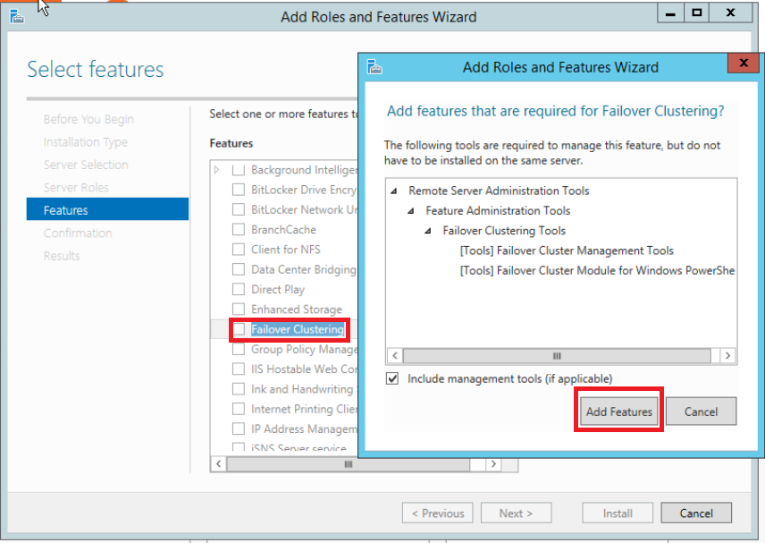 Before installing the Failover Cluster Manager, the Failover Clustering feature must first be installed. Please refer to step 5 of NAS Settings.