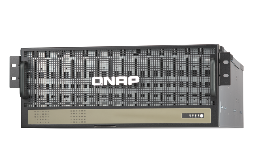 Rear panel: SAS connector, SAS UP/ DOWN Link Status LEDs, ID LEDButtons Power Dimensions (HxWxD) 176 × 482 × 750 mm Excludes ear hook and the protruding part of the Power Supply Unit.Weight (Net) 25.204 kg Weight (Gross) 58.2 kg Operating Temperature 0 - 40 °C (32°F - 104°F) Storage Temperature -20 - 70°C (-4°F - 158°F) Relative Humidity 5-95% RH non-condensing, wet bulb: 27˚C (80.6˚F) Power Supply Unit 1300W(x2), 100-240V Power Consumption: Operating Mode, Typical 746.21 W Tested with drives fully populated.Fan 6 x 120mm, 12VDC System Warning Power Failure LED, Temperature (Overheating) LED, FAN Fault LED QTS / QuTS hero QuTS hero Supports JBOD cascading Supports expanding NAS storage pools Supports Multi-path Standard Warranty 5 Management Managed via QNAP QuTS hero OS
