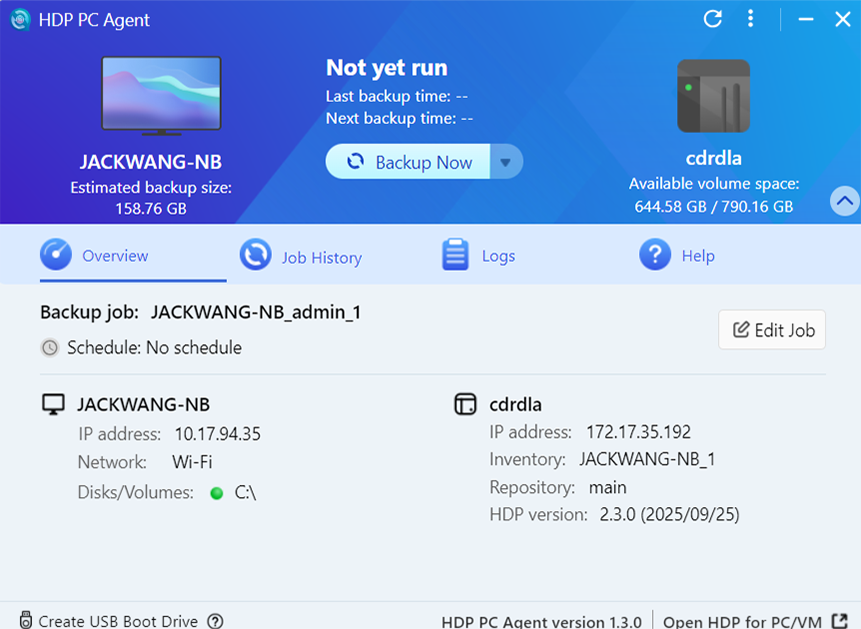 HDP PC Agent provides system backup and full device restoration for applications, system settings, and data from Windows® PC and servers. You can easily connect your Windows Client with QNAP NAS in just a few clicks and create backup jobs. HDP PC Agent also supports restoration without shutting down for greater usage flexibility.