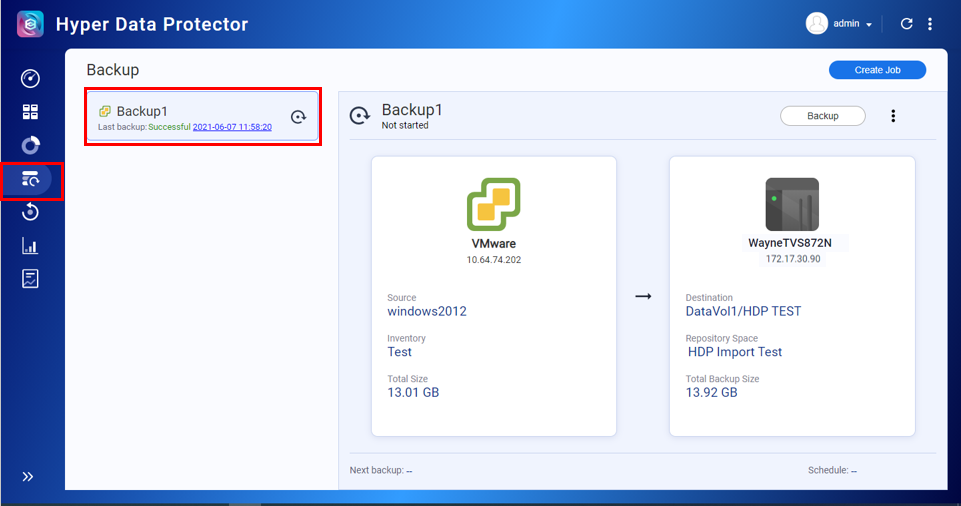- Click Backup > Create New Job.
