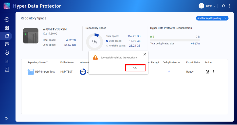 - HDP supports repository importation between the QTS and QuTS hero systems.