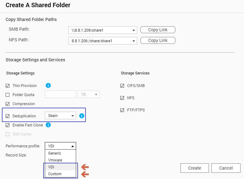 In order to enable the deduplication option, you could select the VDI or Customized option in Performance profile.