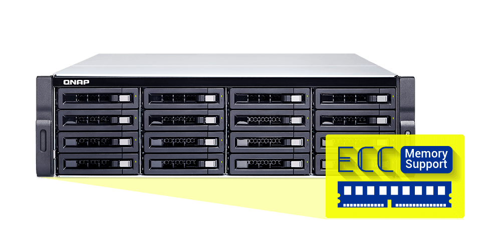 The Intel® Xeon® E based TS-1683XU-RP uses ECC memory that can detect and correct single-bit memory errors as they occur to prevent downtime and data loss, which is essential for always-on, mission-critical, server-grade applications. The TS-1683XU-RP supports dual-channel DDR4 memory in four Long-DIMM slots. When using paired memory modules, the TS-1683XU-RP can leverage the power of dual-channel architecture to boost performance. You also customize the memory configuration (supports up to 128 GB RAM) of the TS-1683XU-RP for greater performance to tackle dynamically-changing workloads such as virtualization.