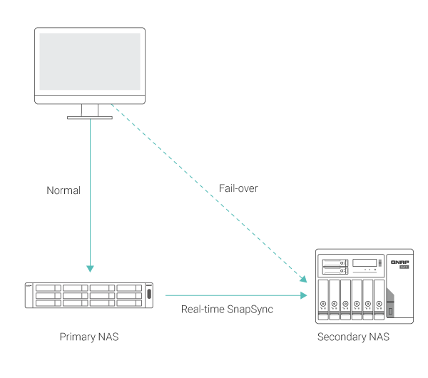 Real-time SnapSync ensures that both the primary and secondary NAS maintain identical data. When data is written to the source, it is immediately written to the destination. If the primary NAS goes offline, IT staff can simply adjust the privilege settings of the secondary NAS to ensure continuous operations. SnapSync provides the strongest support for nonstop business operations and helps users to reduce the risk of data loss.