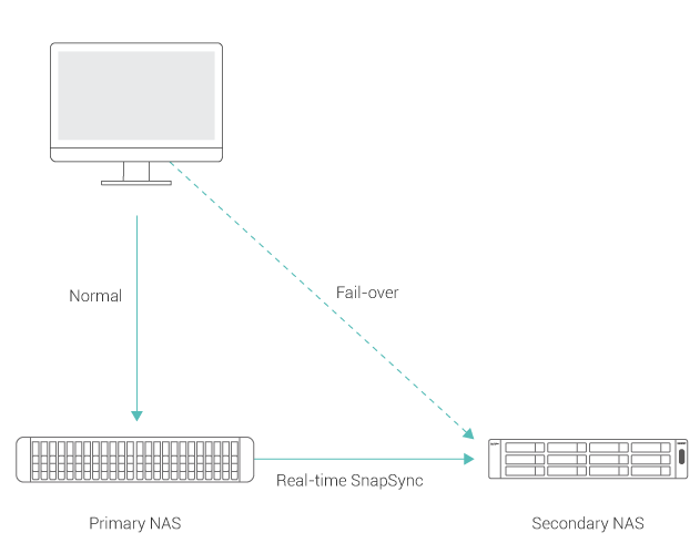 Real-time SnapSync ensures that both the primary and secondary NAS maintain identical data. When data is written to the source, it is immediately written to the destination. If the primary NAS goes offline, IT staff can simply adjust the privilege settings of the secondary NAS to ensure continuous operations. SnapSync provides the strongest support for nonstop business operations and helps users to reduce the risk of data loss.