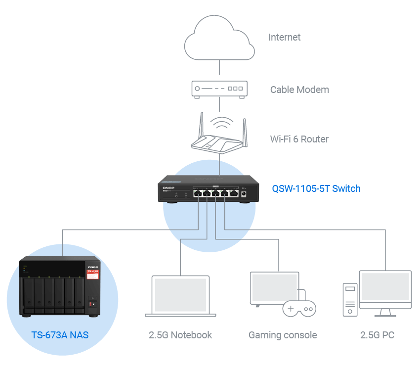 QNAP helps you upgrade to a high-speed network and data storage center in your home or office, providing a full 2.5G network experience.