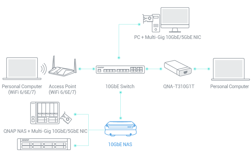 Two 10GBASE-T/NBASE-T RJ45 ports accelerate virtualization tasks, high speed backup/recovery, file sharing, and video transmission.