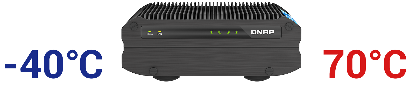With a fanless design and rock-solid chassis, the TS-i410X industrial grade NAS is designed for harsh environments. The TS-i410X can operate in temperatures of -40 ~ 70 Celsius (-40°F ~ 158°F) while its 9V ~ 36V DC wide-range power supply is ideal for factories, warehouses, transportation, and other rugged operating environments.