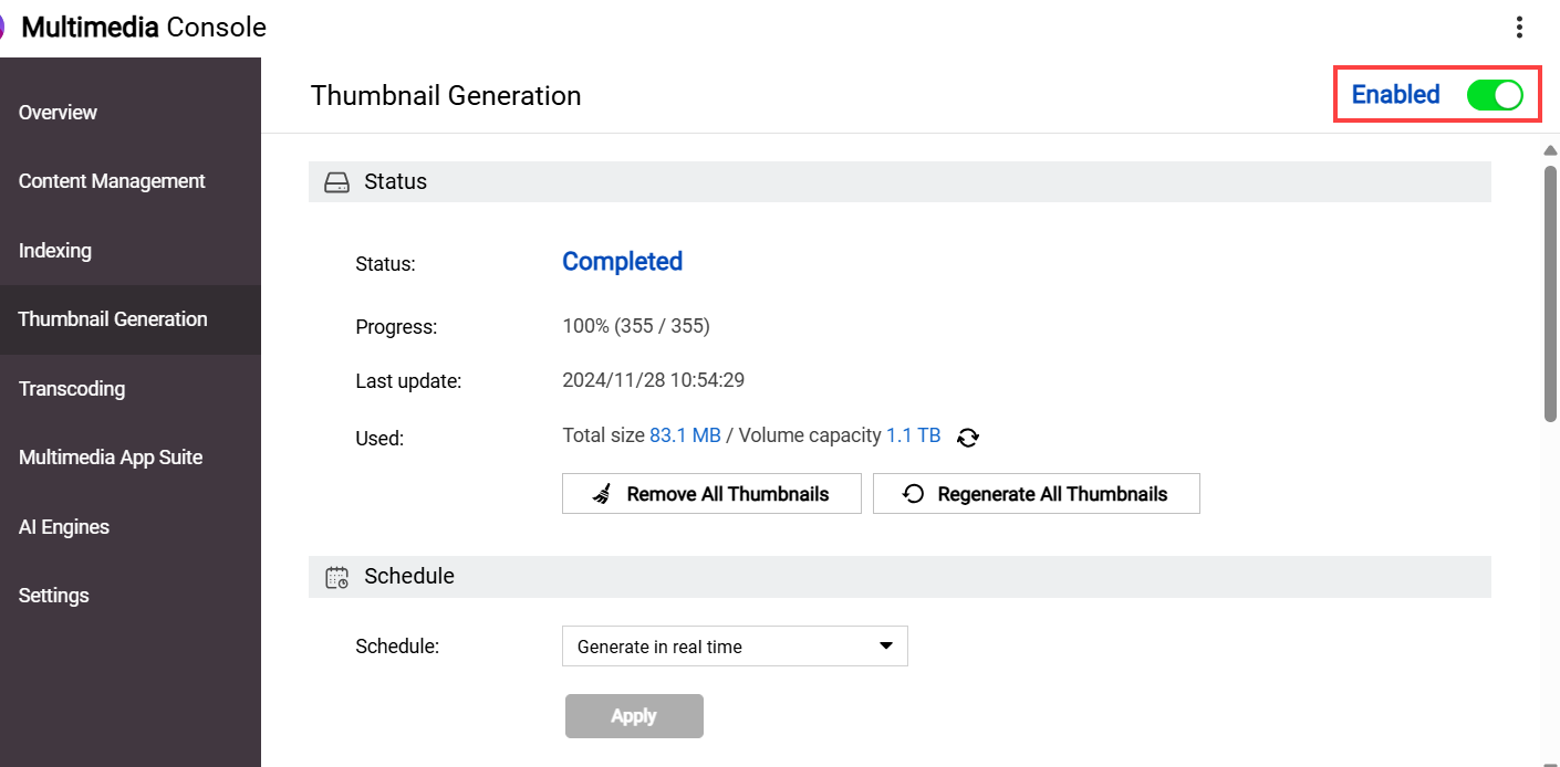 - Ensure that Thumbnail Generation toggle is enabled.