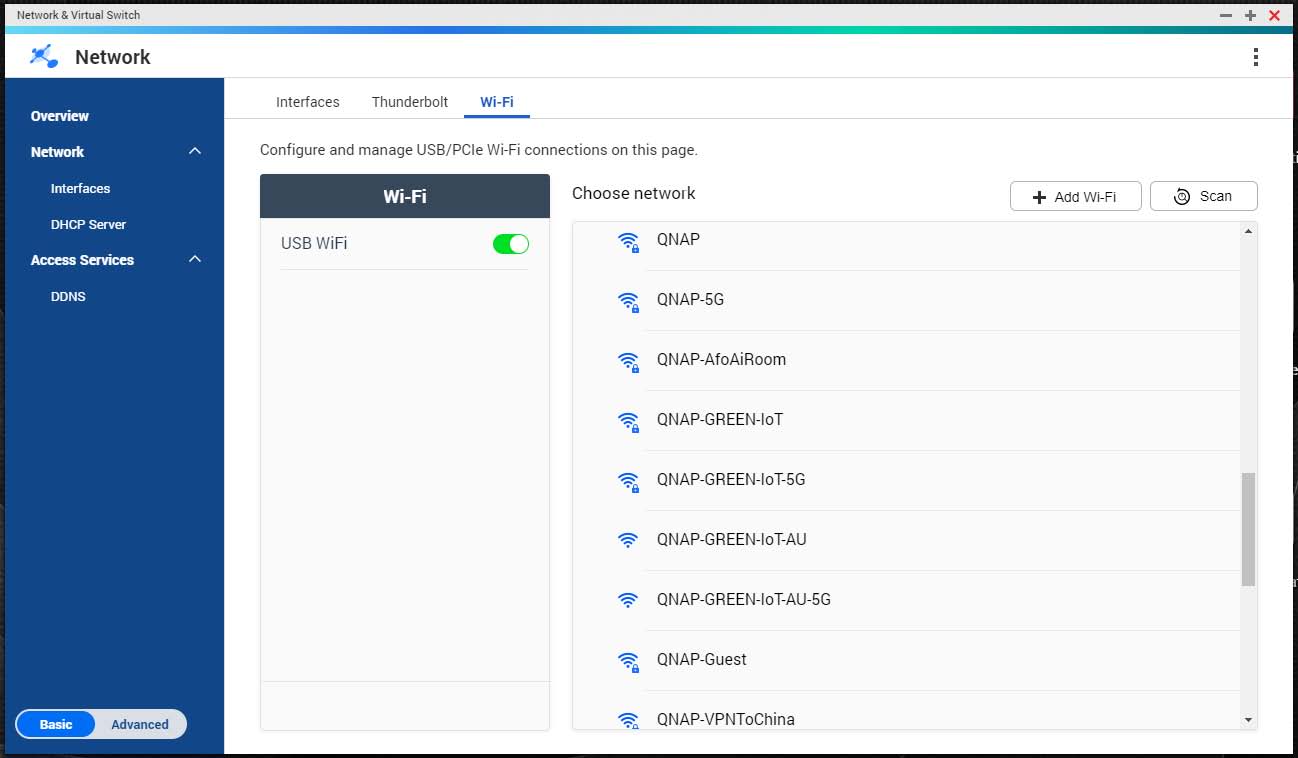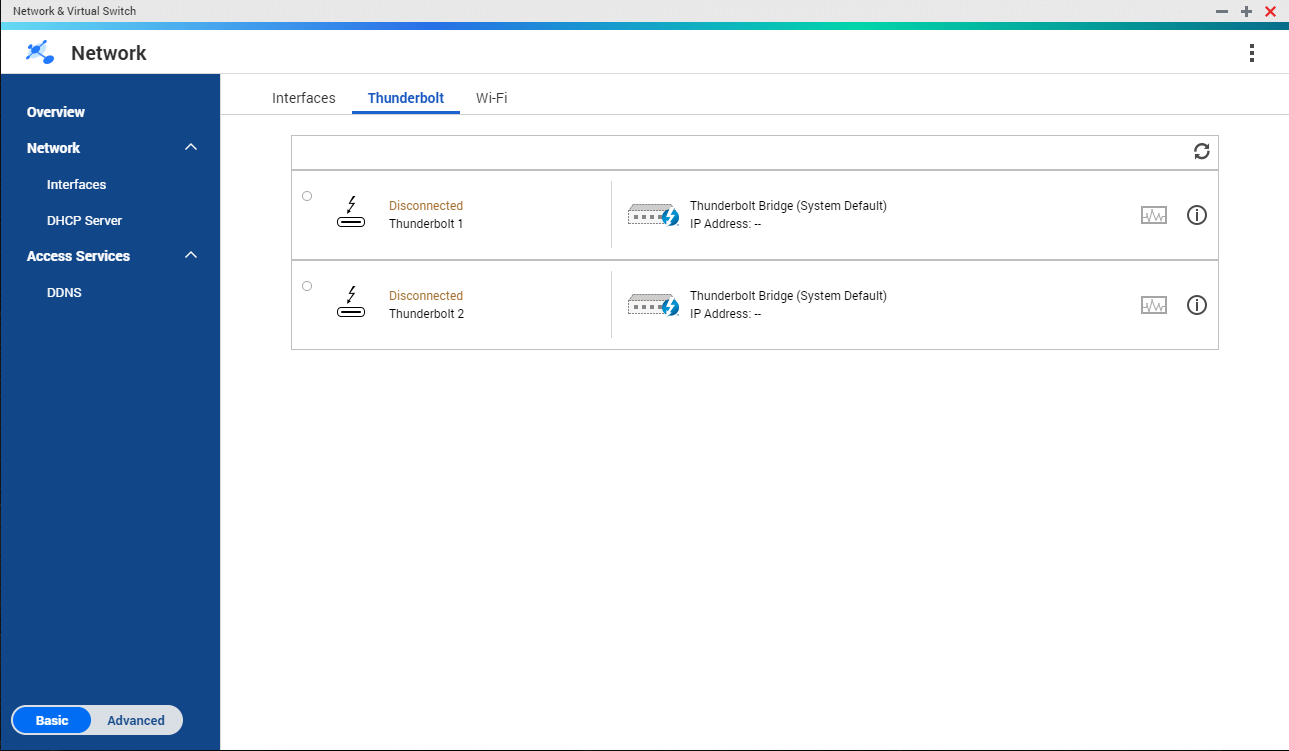 Network & Virtual Switch is a QTS utility that centralizes the creation, configuration, and control of network connections. Network & Virtual Switch also manages physical network interfaces, virtual adapters, Wi-Fi, and Thunderbolt connections in addition to controlling DHCP, DDNS,and gateway services.