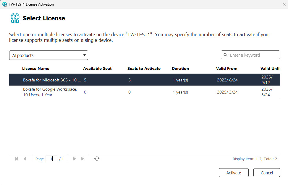 Qfinder Pro activates the selected licenses and a confirmation window appears.