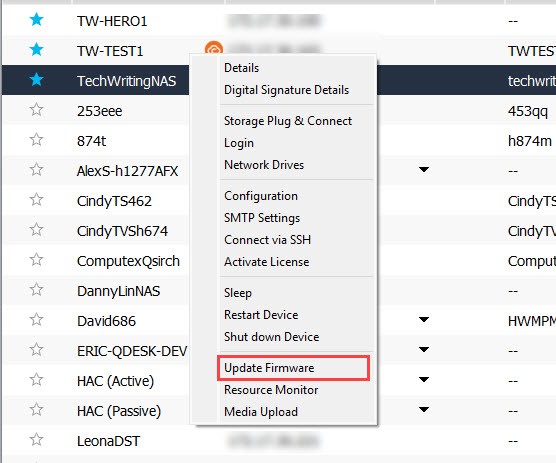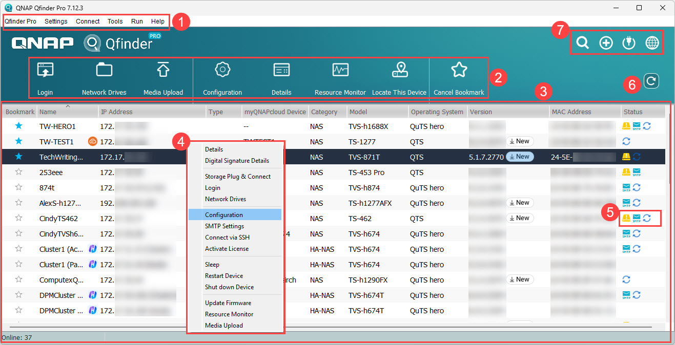 You can manage various functions of your QNAP device in Qfinder Pro. The device list of the main page automatically lists all QNAP devices that can be discovered on your local area network.