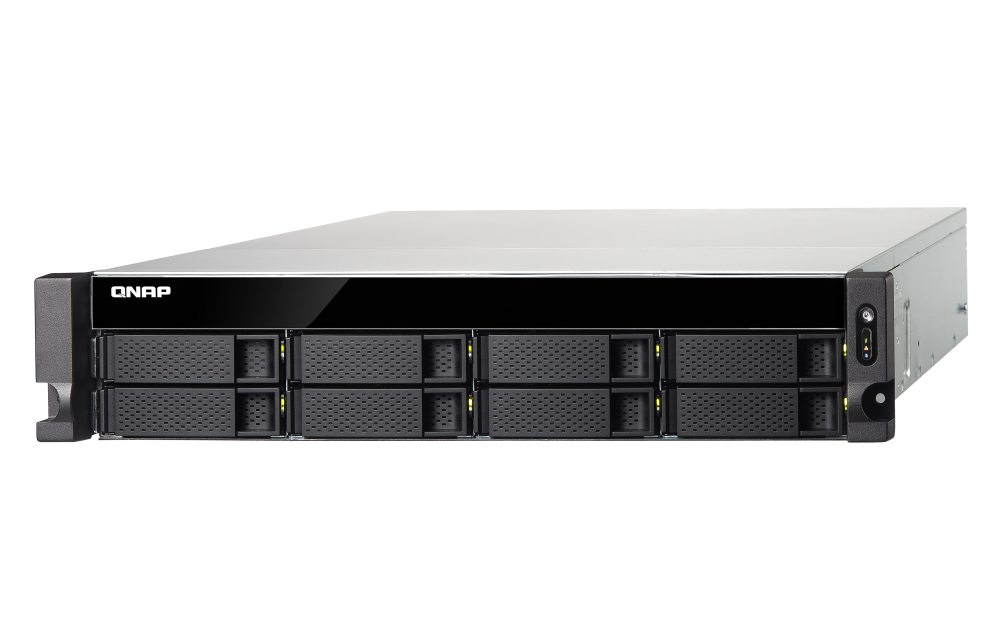 4 x Type-A USB 3.2 Gen 2 10GbpsForm Factor 2U Rackmount LED Indicators HDD 1-8, Status, LAN, storage expansion port status Buttons Power, Reset Dimensions (HxWxD) 3.48 × 18.98 × 22.13 inch Excludes ear hook and the protruding part of the Power Supply Unit.Weight (Net) 24.23 lbs Operating Temperature 0 - 40 °C (32°F - 104°F) Storage Temperature -20 - 70°C (-4°F - 158°F) Relative Humidity 5-95% RH non-condensing, wet bulb: 27˚C (80.6˚F) Power Supply Unit 300W(x2), 100-240V Power Consumption: Operating Mode, Typical 89.99 W Tested with drives fully populated.Fan System fan: 2 x 60mm, 12VDC System Warning Buzzer Standard Warranty 3 Max. Number of Concurrent Connections (CIFS) - with Max. Memory 10000 Note: Use only QNAP memory modules to maintain system performance and stability. For NAS devices with more than one memory slot, use QNAP modules with identical specifications and refer to the hardware user manual to install compatible QNAP memory modules.