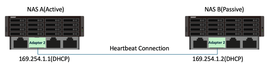 - On each NAS device, the network interface used for the heartbeat connection must be assigned a DHCP IP address.