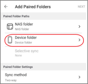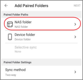 • Two-way – Syncs changes between the NAS and mobile device in both directions.