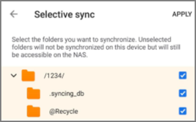 • One-way sync from NAS – Only copies changes from the NAS to the mobile device.