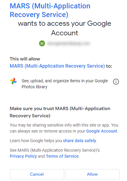 You will be asked to allow MARS to access your Google Account. - Select Allow.