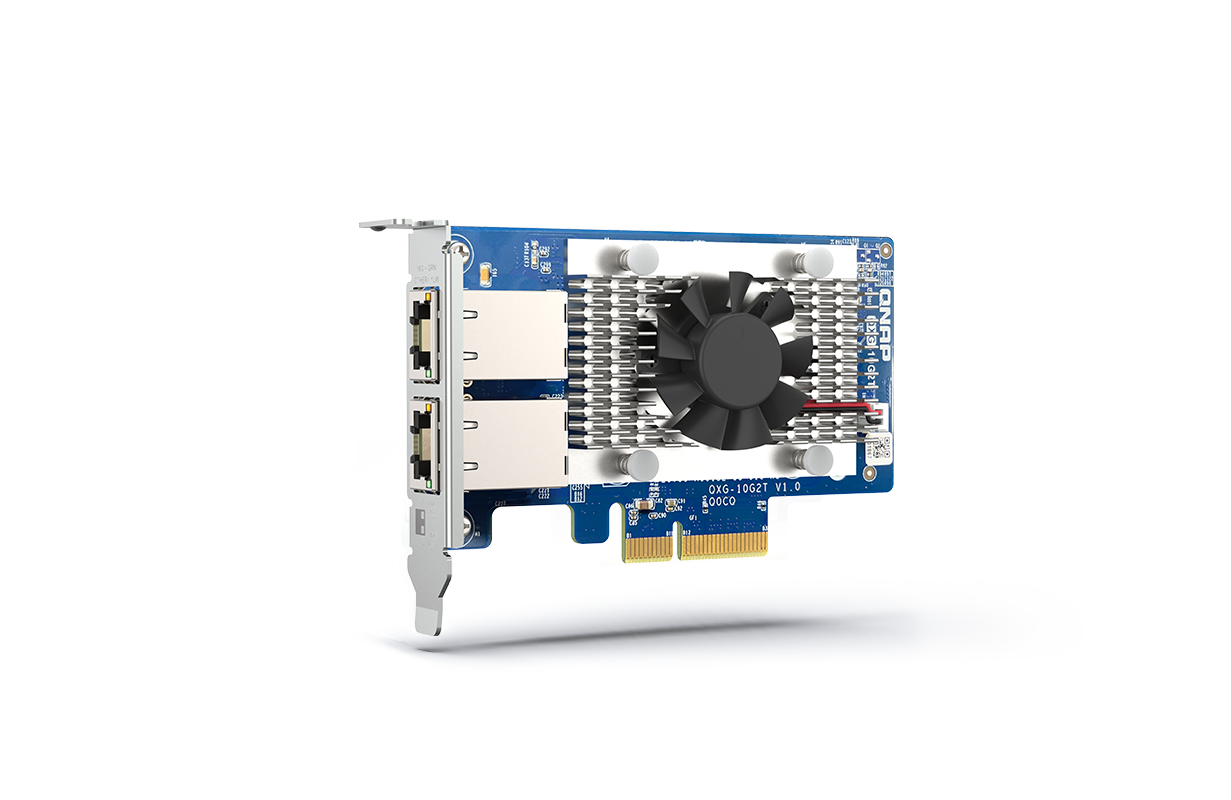 The QXG-10G2T is a highly energy efficient and cost-effective 10 GbE network expansion card, which is suitable for a team requiring simultaneous data access with multiple members, or a photographer/videographer requiring super-fast data transmission.