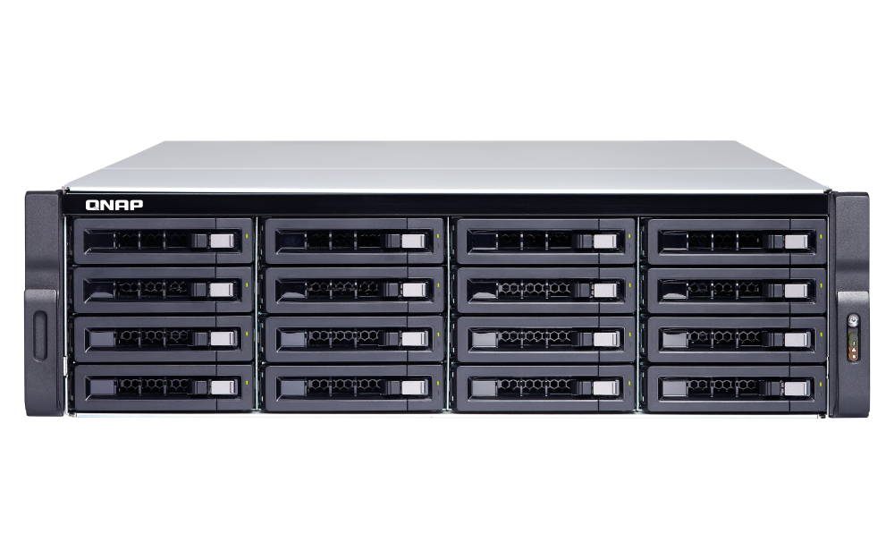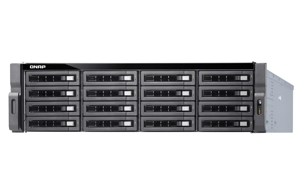 1 x Type-A USB 3.2 Gen 2 10GbpsForm Factor 3U Rackmount LED Indicators HDD 1-16, Status, LAN, storage expansion port status Buttons Power, Reset Dimensions (HxWxD) 130 × 481 × 573.5 mm Excludes ear hook and the protruding part of the Power Supply Unit.Weight (Net) 15.26 kg Weight (Gross) 21.38 kg Operating Temperature 0 - 40 °C (32°F - 104°F) Storage Temperature -20 - 70°C (-4°F - 158°F) Relative Humidity 5-95% RH non-condensing, wet bulb: 27˚C (80.6˚F) Power Supply Unit 500W(x2), 100-240V Power Consumption: Operating Mode, Typical 136.45 W Tested with drives fully populated.Fan System fan: 4 x 92mm, 12VDC System Warning Buzzer Standard Warranty 3 Max. Number of Concurrent Connections (CIFS) - with Max. Memory 2500 Note: Use only QNAP memory modules to maintain system performance and stability. For NAS devices with more than one memory slot, use QNAP modules with identical specifications and refer to the hardware user manual to install compatible QNAP memory modules.