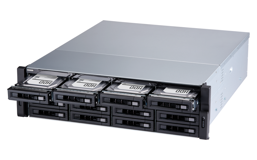 1 x Type-A USB 3.2 Gen 2 10GbpsForm Factor 3U Rackmount LED Indicators HDD 1-16, Status, LAN, storage expansion port status Buttons Power, Reset Dimensions (HxWxD) 130 × 481 × 573.5 mm Excludes ear hook and the protruding part of the Power Supply Unit.Weight (Net) 15.26 kg Weight (Gross) 21.38 kg Operating Temperature 0 - 40 °C (32°F - 104°F) Storage Temperature -20 - 70°C (-4°F - 158°F) Relative Humidity 5-95% RH non-condensing, wet bulb: 27˚C (80.6˚F) Power Supply Unit 500W(x2), 100-240V Power Consumption: Operating Mode, Typical 136.45 W Tested with drives fully populated.Fan System fan: 4 x 92mm, 12VDC System Warning Buzzer Max. Number of Concurrent Connections (CIFS) - with Max. Memory 3500 Note: Use only QNAP memory modules to maintain system performance and stability. For NAS devices with more than one memory slot, use QNAP modules with identical specifications and refer to the hardware user manual to install compatible QNAP memory modules.