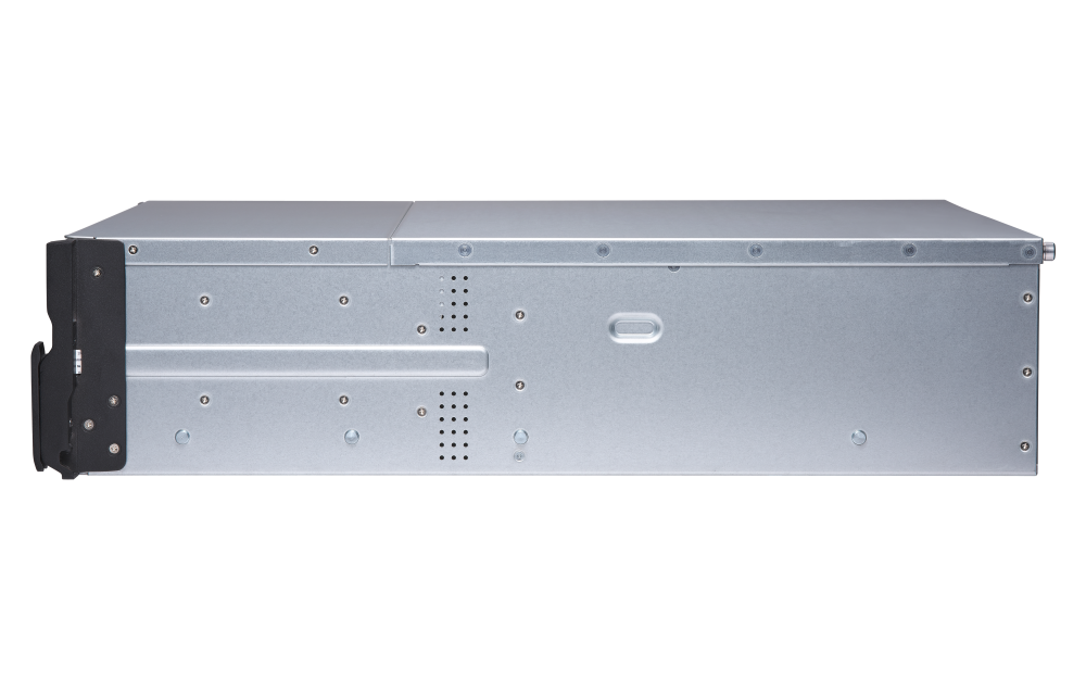 1 x Type-A USB 3.2 Gen 2 10GbpsForm Factor 3U Rackmount LED Indicators HDD 1-16, Status, LAN, storage expansion port status Buttons Power, Reset Dimensions (HxWxD) 130 × 481 × 573.5 mm Excludes ear hook and the protruding part of the Power Supply Unit.Weight (Net) 15.26 kg Weight (Gross) 21.38 kg Operating Temperature 0 - 40 °C (32°F - 104°F) Storage Temperature -20 - 70°C (-4°F - 158°F) Relative Humidity 5-95% RH non-condensing, wet bulb: 27˚C (80.6˚F) Power Supply Unit 500W(x2), 100-240V Power Consumption: Operating Mode, Typical 136.45 W Tested with drives fully populated.Fan System fan: 4 x 92mm, 12VDC System Warning Buzzer Standard Warranty 3 Max. Number of Concurrent Connections (CIFS) - with Max. Memory 5000 Note: Use only QNAP memory modules to maintain system performance and stability. For NAS devices with more than one memory slot, use QNAP modules with identical specifications and refer to the hardware user manual to install compatible QNAP memory modules.