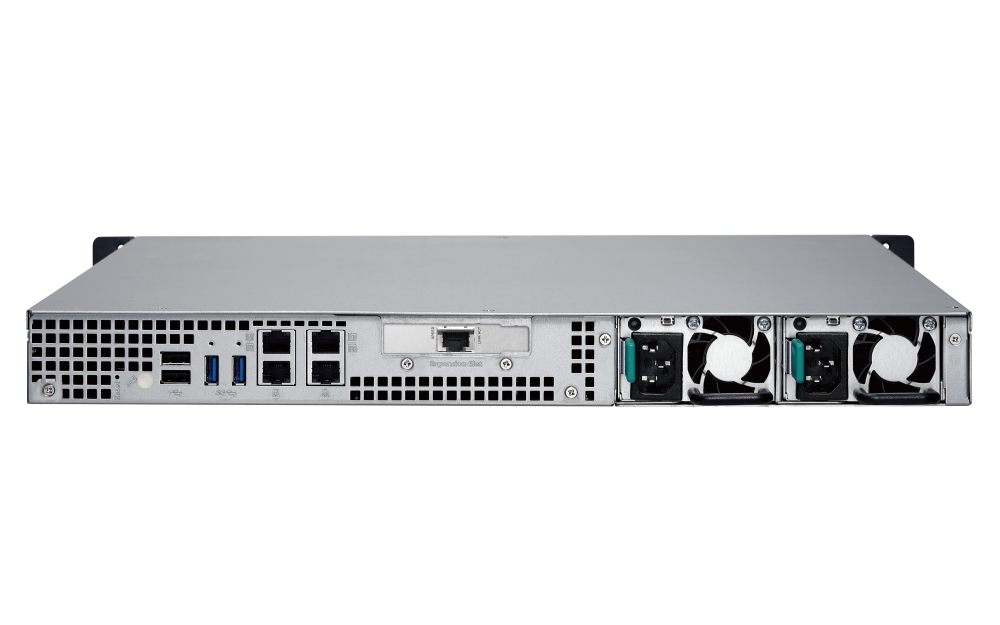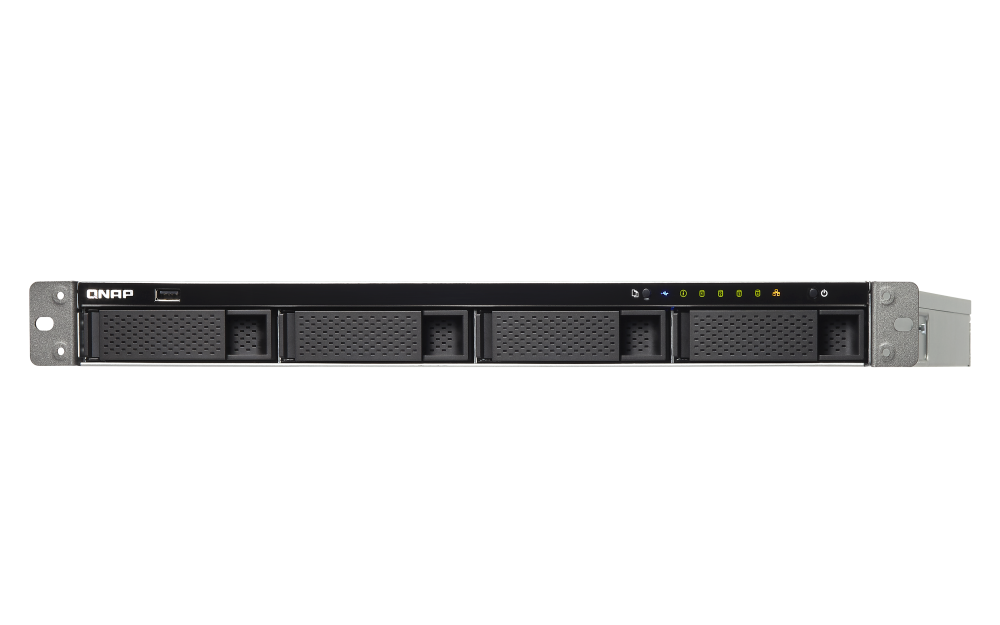 Slot 1: PCIe Gen 2 x4Pre-installed QXG-10G1T PCIe adapterUSB 2.0 port 3 USB 3.2 Gen 1 port 2 USB 3.2 Gen 2 (10Gbps) Port Optional via a PCIe expansion adapter Form Factor 1U Rackmount LED Indicators HDD 1-4, Status, USB, LAN Buttons Power, Reset, USB Auto Copy Dimensions (HxWxD) 44 × 439 × 499 mm Weight (Net) 9.3 kg Weight (Gross) 11.27 kg Operating Temperature 0 - 40 °C (32°F - 104°F) Storage Temperature -20 - 70°C (-4°F - 158°F) Relative Humidity 5-95% RH non-condensing, wet bulb: 27˚C (80.6˚F) Power Supply Unit Redundant 250W, Input: 110-240 Vac~, 50-60Hz, 5A Power Consumption: Disk Standby Mode 44.9 W Power Consumption: Operating Mode, Typical 65.62 W System Warning Buzzer Standard Warranty 3 Max. Number of Concurrent Connections (CIFS) - with Max. Memory 800 Note: Use only QNAP memory modules to maintain system performance and stability. For NAS devices with more than one memory slot, use QNAP modules with identical specifications and refer to the hardware user manual to install compatible QNAP memory modules.