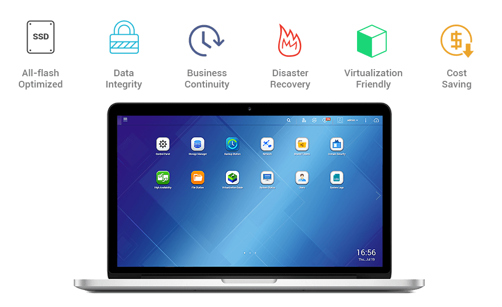 El ES1686dc cuenta con el sistema operativo QES (QNAP Enterprise Storage) 2.1.0, basado en el sencillo y eficiente kernel FreeBSD y en el sistema de archivos ZFS, demostrado durante años de experiencia como el más adecuado para aplicaciones empresariales de gama alta. No solo proporciona QES 2.1.0 una protección de datos fiable, recuperación y características de calidad empresarial, sino que está optimizado para almacenamiento flash y es capaz de impulsar un rendimiento sobresaliente para matrices de almacenamiento todo flash para acelerar servicios esenciales y eliminar retos en entornos VDI. QES 2.1.0 también incluye capacidades de Calidad de servicio (QoS) que ayudan a asegurar un rendimiento de almacenamiento primario uniforme en entornos de múltiples aplicaciones. Continuando la misma experiencia del usuario con el intuitivo sistema operativo QTS, QES proporciona a los usuarios empresariales una cómoda curva de aprendizaje para la rápida implementación dentro de infraestructuras de TI.