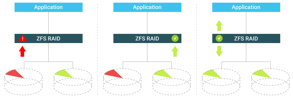 Diseñado centrándose en la integridad de los datos, un aspecto fundamental de la seguridad y fiabilidad del almacenamiento, el ES1686dc basado en QES usa sus sumas de comprobación de extremo a extremo para detectar y corregir el daño silencioso de los datos provocado por defectos de hardware, fallos en el firmware o errores en los metadatos. Si se detectan infracciones de integridad, QES repara automáticamente el daño usando datos de los otros reflejos antes de que se pasen los datos a las aplicaciones.